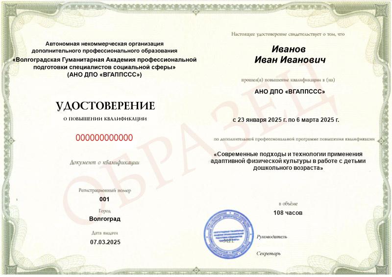 Повысить квалификацию – значит получить новые навыки и компетенции. Курс завершается выдачей официального удостоверения, где указывается ФИО выпускника, название программы, сроки обучения и продолжительность программы.
